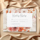 Föreställ dig att du anger perfekten för bröllopsdagen med ett bröllop-svarskort som är lika unikt och vackert som din kärlek-artikel. Vår blommigt för höstfärgning i eleganten har en fantastisk, handmålad ram av bränd orange rost, persikoblommor och krämblommor. Fintvätt grönt Grånglar en klassisk vit bakgrund. Den här designen är perfekt för par att drömma om en romantisk, rustisk eller bohemisk firande som erbjuder en tidlös första glimt in i den oförglömliga dag som väntar dina gäster. Skapat av Farmhouse Press.