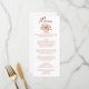 A colorful retro funky modern burnt orange floral bouquet wedding dinner menu. Which features chic template design of boho vintage white background on the front and back. With terracotta orange whimsical typography. Perfect and matching with the whole suite.