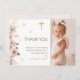 Boho Butterfly Baptism Tack vare ditt kort Söt fotobaptism eller tack för att du har ett kort med en blommigt för guld kor, rosa, guld och grått chic arrangemang och fjärilar på benvit bakgrund.
