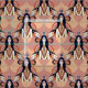 Denna mystiska struktur har en upprepande mönster av serene guddess figurer med vingar, flödhår i mörk och radiant geometrisk halos. Plattan med persikor, terracotta, oliver och väcker vintage 1970-talets vibes med en andlig-tvist. Perfekt för boho decor, kläder från påstående eller metafysisk-inspirerade hantverk. Den här designen firar femininin kraft, omvandling och inre fred med konstnärligt lugn.