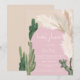 Tropical Boho öknar grönt cactus och pampas gräs möhippa inbjudan med vild cacti, pampas vattenfärg, bågformade med muterade jordtoner med ljusbeige och terracotta färg med dammig rosa båge.