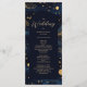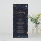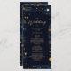 Följ dina gäster genom speciella dag med det här boho celestial bröllop-ceremonin. Med en rik marin himmel nattetid, skuggande guld-stjärnor och elegant-manustypografi, ger det här dubblan en översikt över din ceremoniorder och bröllopsfest. Perfekt för celestial, stjärnnatten eller boho bröllop, som lägger till en drömmande och organiserad kontakt till firande. Den dubbla utformningen omfattar ceremonidetaljer, bröllopsfest namn och ett hjärtligt tack till dina gäster.
