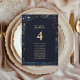 Hjälp dina gäster att hitta ställe under stjärnorna med det här boho celestial bröllop-sätesschemat. Med ett djupt marint nattkort i himmel, gyllene stjärnor, elegant-skript och modern typografi kombinerar det här dubblan ett bordsnummer med en personlig-gästlista. Perfekt för stjärnkväll, celestial och boho bröllop, för skönhet och organisation till din speciella natt. perfekt för dubbla av konstruktionen för firande inomhus eller utomhus.