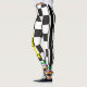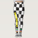 Grafik med mönster i schackbräde i svartvitt med färgstark linjer, grönt, lila och orange med stor gult Text Workout.