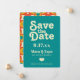 Boho Chic 70's Retro Teal Save the Date Meddelande