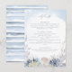 This lovely ethereal ocean themed dusty blue wedding details enclosure card is perfect for summer beach destination weddings. The coastal chic design has a variety of delicate watercolor coral, starfish and seashells and elegant stylish text with a modern script calligraphy font.