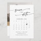 Den här boho-chicen svartvitt QR-kodsfotokalendern sparar datumkortet som perfekt för ett minimalistiskt bröllop. Den svarta och vita, moderna bohemiska designen har en enkel rustik kalligrafi med ett unikt men klassiskt stil. Perfekt för vilken säsong som helst: vår, sommar, höst eller vinter. Anpassa ditt datum med kalendern för din månad i bröllop med ett hjärta över datumet i bröllop, platsen i namn, bröllop, ett förlovning och en QR-kod som länkar till webbplatsen i bröllop.