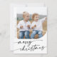 Boho Chic Black White DIY Simple Photo Julkort Helgdag Card. Den svarta och vita, moderna bohemiska designen har en enkel, rustik kalligrafi med ett unikt men klassiskt stil. Anpassa framsidan av dina julkort med året, din familj namn och ett foto. Ta med ett Julhälsningar meddelande på baksidan om personligen.