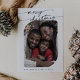 Boho Chic Black White Photo Cute God jul Helgdag Card. Den svarta och vita, moderna bohemiska designen har en enkel, rustik kalligrafi med ett unikt men klassiskt stil. Anpassa framsidan av dina julkort med året, din familj namn och ett foto. Ta med ett Julhälsningar meddelande på baksidan om personligen.