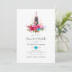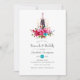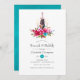 Boho chic rosa och turkos blå blommigt buquets brunch och bubbel inbjudningskort för möhippan designad för att snabbt och enkelt kunna anpassade till dina händelsespecifikationer.