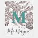 blommönstret för grått och vit bohemisk chic kompletterar monogrammet för svart och teal och namn för krita.