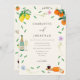 Fira din soliga sommarboho citrus i temat bröllop med den här vackert moderna piskfärgsinbjudan, designad med vibranta boho botanicals och ett uppfriskande citrustema. Den begåvade konstnären Catherine Sweetman har skapat att den här formgivningen har en känslig blad, vilda blommor och lekande accenter som vin och ost, musik noter och bubbelflöjt. Den vismaktiga handskrivna inslag parad med elegantens moderna typografi skapar en varm, glatt atmosfär som perfekt anger tonen för firande. Paletten i färg brinner med minsta lilla citron, orange, gult och blått, grönt, rosa och lila, vilket ger en varsam sommardag. De charmerande illustrationerna av mousserande vin flaskor, som är förankrade i bruden och brudgummen initialer, tillför en personlig till denna speciella utformning. Med lättanpassade mallar kan du enkelt lägga till namn, bröllop-datum och all viktig information, och skapa en inbjudan som är lika unik som din kärlek-artikel. Denna inbjudan till vattenfärger är det perfekta valet för par att söka en roligt, färsk och pulserande estetik för bröllop.