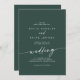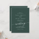 Den här boho-chicen framträder gröntens inbjudan till bröllopet är perfekt för ett minimalistiskt bröllop. Mörken och den moody grönten för jägare av skogar med modern bohemisk design har en enkel, rustisk kalligrafi med ett unikt men klassiskt stil. Spara papper genom att på baksidan av inbjudan ange mer information i stället för på ett separat visitkort.