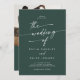 Den här boho-chicen framträder som gröntens foto, och inbjudan till QR-kodbröllop är perfekt för ett minimalistiskt bröllop. Mörken och den moody grönten för jägare av skogar med modern bohemisk design har en enkel, rustisk kalligrafi med ett unikt men klassiskt stil. Anpassa baksidan av din bröllopsinbjudan med ditt favoritfoto på förlovningen. Inkludera en QR-kod för gäst för enkel OSA, visa information eller båda.
