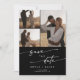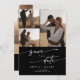 Den här boho chic färg redigerbara QR-koden för flera foton sparar datumkortet som perfekt för ett minimalistiskt bröllop. Den sofistikerade och chic mörken svart modern bohemisk design har en enkel, rustisk kalligrafi med ett unikt men klassiskt stil. Anpassa datumet med namn, bröllop-datum, plats, foton med fyra förlovningar och en QR-kod som länkar till webbplatsen för bröllop.