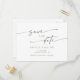Denna boho chic-grönt och det vita bröllop spara datum-vykortet är perfekt för ett minimalistiskt bröllop. Den neutralt grönten för olivsaft och den vita, moderna bohemiska utformningen har en enkel, rustisk kalligrafi med ett unikt men klassiskt stil. Anpassa ditt sparande av datumvykortet med namn, bröllop-datum, plats och bröllop webbplats adress.