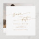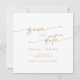 Den här boho chic guld och den vita fyrkantiga baksidan sparar datumkortet är perfekt för ett minimalistiskt bröllop. Neutralt gult guld och vit modern bohemisk design har enkel, rustisk kalligrafi med ett unikt men klassiskt stil. Anpassa ditt datum med namn, bröllop-datum, plats, fotot på förlovningen och din bröllop webbplats adress.