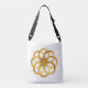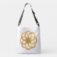 Modeväska med boho chic gyllene mandala på vit bakgrund.