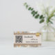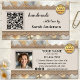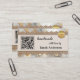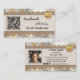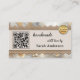 Visitenkort med boho chic-design med metalliskt guldspets på canvas med en glamourös bakgrund. Flera mallar är tillagda: en QR-kod, logotyp och sociala medier. Du kan anpassa dessa och ersätta ikonerna för sociala medier med dina egna ikoner. På baksidan finns också utrymme för ditt eget foto. Ett modernt professionellt visitkort för alla som skapar handgjorda hantverksprodukter eller gåvor.