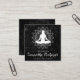 Boho Chic Mandala Trendig Celestial Black White Square Affärskort. Boho chic affärskort design för reiki master, yoga-instruktör, astrologiläsare. Designad med en vit mandala och en silhuett i en halv lotus yoga form.