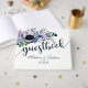 Boho Chic Mint & Navy Blommigt Bröllop Monogram Gästböcker