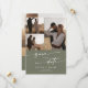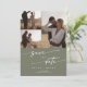 Den här boho-chicen oliv grönt QR-multifotokod som sparar datumkortet är perfekt för ett minimalistiskt bröllop. Den mörk grönt skogstonin med modern bohemisk design har en enkel, rustisk kalligrafi med ett unikt men klassiskt stil. Anpassa datumet med namn, bröllop-datum, plats, foton med fyra förlovningar och en QR-kod som länkar till webbplatsen för bröllop.