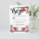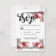 Snygg Bohemian Red blommigt ro-design. Bohos avslappnade och nästan avslappnad vib uttrycks perfekt som ro intertwine med hörnen. Mjukarna har en del av en Victoriansk känsla. OSA skrivs i ett stort, öppet, handskrivet skript. Svarsuppgifterna från bröllop är skrivna på ett modernt och enkelt sätt. Kortets baksida är djupt röd. Det gör det perfekt för ett fallbröllop. Du kan göra mallen ljusare genom att ändra färg till vitt, svart eller vad som helst mellan.