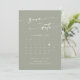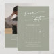 Den här boho-chicen skickar grönt QR-kodfotokalendern som sparar datumkortet är perfekt för ett minimalistiskt bröllop. Neutraltens ljust grönt jordton med modern bohemisk design har en enkel, rustisk kalligrafi med ett unikt men klassiskt stil. Anpassa ditt datum med kalendern för din månad i bröllop med ett hjärta över datumet i bröllop, platsen i namn, bröllop, ett förlovning och en QR-kod som länkar till webbplatsen i bröllop.