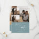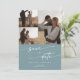 Den här boho-chicen-skalet för multifoto QR-kod som sparar datumkortet är perfekt för ett minimalistiskt bröllop. Den färgstarka blå grönten med modern bohemisk design har en enkel, rustisk kalligrafi med ett unikt men klassiskt stil som påminner om strand, hav och sommarhavsområde. Anpassa datumet med namn, bröllop-datum, plats, foton med fyra förlovningar och en QR-kod som länkar till webbplatsen för bröllop.