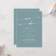 Den här boho chic-skalbagaget vi gör bröllopsinbjudan är perfekt för ett minimalistiskt bröllop. Den färgstarka blå grönten med modern bohemisk design har en enkel, rustisk kalligrafi med ett unikt men klassiskt stil som påminner om strand, hav och sommarhavsområde.