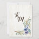 Rustik country bohemisk inbjudan till bröllopsfest med suckulenter, eukalyptusblad, ranunculusblommor och kvistkrans med vittrad träbakgrund och monogram.