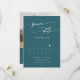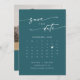 Den här boho chic teal blue QR-kodsfotokalendern sparar datumkortet som perfekt för ett minimalistiskt bröllop. Den djärva mörken turkos jewelton med modern bohemisk design har enkel rustik kalligrafi med ett unikt men klassiskt stil. Anpassa ditt datum med kalendern för din månad i bröllop med ett hjärta över datumet i bröllop, platsen i namn, bröllop, ett förlovning och en QR-kod som länkar till webbplatsen i bröllop.