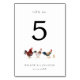 Bordsnumret Rustic och boho bröllop med vattenfärgstryck för kycklingar.