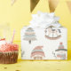 Dreamy Santas, delicate Christmas trees, adorable snowmen and charming wood rocking horses make up this delightful holiday pattern