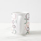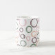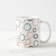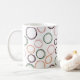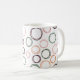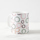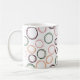 Mugg har en Boho-design av överlappande cirklar på rosa, lila, grönt och karamellorange.
