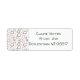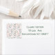 Dessa returetiketter har en Boho-design av överlappande cirklar på rosa, lila, grönt och karamellorange.