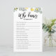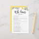 Vem känner mamman bäst? Lägg till detta roliga och lekfulla botaniska baby shower spelkort till din fest. Den har vattenfärg illustrationer av citroner och grönska. Du kan anpassa kortet genom att lägga till text på baksidan. Detta citron baby shower spelkort är perfekt för vår- och sommar shower.