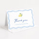 Jag vill uttrycka min tacksamhet för vår moderna babydusch eller tack för möhippan, med en handdragen dubbla gräns, en enkel citron, och en ny sommarblå och vit mönster rand i motsatt riktning. Anpassa med egen text (och foto om du vill). Observera att färg på gräns på framsidan och rand på baksidan kan redigeras av dig i Zazzle-designen i verktyg.