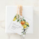Denna söt boho inspirerade till att möhippan favör tag-taggen har en arrangemang av vattenfärgade citrusfrukter, inklusive citroner, orangar, blommar och grenar, med vända sidan samordnad i bränd orange. Anpassa med brudens namn och duschdatum.