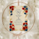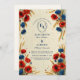 En romantisk blommigt ram som brinner med rödpoppor och blåkornblommor omger dina uppgifter om personligt bröllp på en mjuk bakgrund från Parchment-stil. Perfekt för sommar, landsbygd eller bröllop som inspirerats av russinen, denna tidlösa utformning blandar vibrerande blommor med vintage charm. Anpassa med namn, monogram och datum för en unik keepé som fångar skönheten i firande.