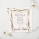 Ett unikt kort för Spara datummeddelande i bröllop. En vattenfärgad boho rustic bröllop-arch, med skrapning av elegant silke chiffon, elfenbensblommor från ro och blad av grönt, handflatan och pampas med fjädrar och en vintäckt pil. Kortets baksida har en ömtålig blommigt i båda hörnen. Du kan ändra gräddbakgrunden i färg genom att klicka på knappen Redigera design. Klicka på knappen 'personalisera' för att lägga till all information.
