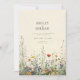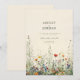 Denna eleganta bröllopsinbjudan har en delikat krämfärgad bakgrund prydd med en utsökt samling vilda blommor. Mjuka nyanser av rosablush, skär lavendel och dämpade gröna toner skapar en drömsk och romantisk stämning. De vilda blommorna är konstnärligt arrangerade runt kanterna och inramar texten med en naturlig och charmerande touch.