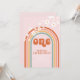 Retro inspirerade till en första födelsedagsinbjudan med Hippie stil, daisy och boho typsnitt och färg.