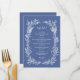 Förhöj era bröllopsbord med denna sofistikerade mörkblå vildbloms-krans bröllopsmeny, med en krispig vit handritad botanisk ram av vilda blommor och lövverk mot en rik kornblå bakgrund. Detta menykort är det perfekta sömlösa komplementet till era matchande mörkblå vildbloms-bröllopsinbjudningar, detaljerade kort och bordssmyckning, vilket skapar en sammanhängande, elegant brevpappersserie som knyter samman hela er bröllopsestetik.