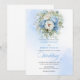 Boho Dammig Blå Vit Peony Guld Bröllopsinbjudan Inbjudningar
