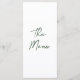 A colorful retro funky modern green and white floral bouquet wedding dinner menu. Which features chic template design of boho vintage dark moss green background on the front and back. With white whimsical typography. Perfect and matching with the whole suite.