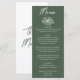Boho Dark Moss Green Hand Drawn Floral Wedding Meny