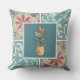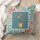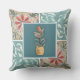 Här är en söt dekorativ kudde med dekorativa plattor i färg av khaki, teal och rost med en mittbricka med blomma i vas. Samma design finns både fram och bak. Du väljer din storleka struktur innan du lägger den i din shoppingvagn.
