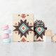 A Southwestern-inspired geometric emblem featuring bold diamond shapes, earthy red and brown tones, and vibrant turquoise accents. The distressed texture adds a handcrafted, vintage feel, giving this design a strong boho-tribal aesthetic.