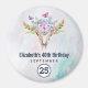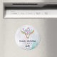 Spara datum-födelsedagsmagnet med en turkos och pastellak vattenfärgsbakgrund. En boho chic-dödskalle med en blomsterbukett på huvudet och små fjärilar som fladdrar runt.
